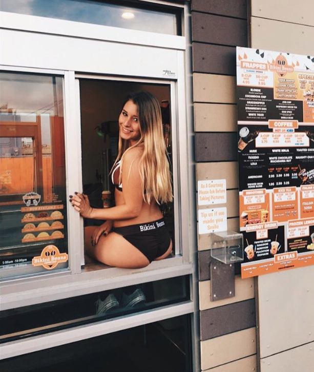 В американском штате Аризона сотрудницы кофейни Bikini Beans Espresso занимаются приготовлением кофе в купальнике или нижнем белье. Об этом пишет Daily Mail.